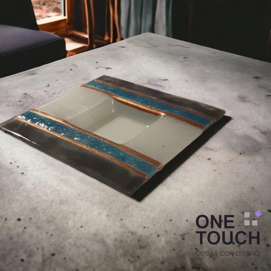 Diseño limpio, líneas definidas y una paleta depurada, acorde al estilo ONE TOUCH. Cada pieza es única, con terminaciones cuidadas y un proceso artesanal que resalta la transparencia y los contrastes del vidrio.