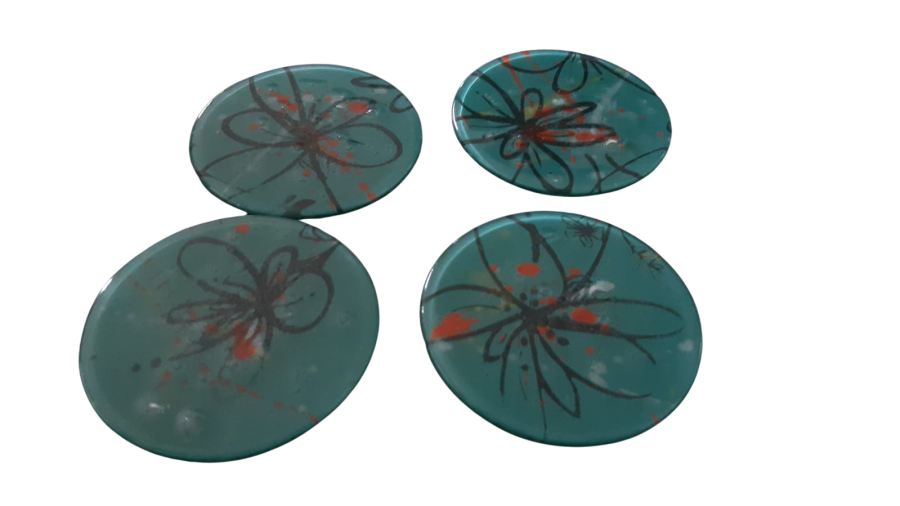 Cada pieza es única: trabajamos con una paleta mínima de colores —transparencias, neutros y un acento de color definido— para lograr composiciones limpias, modernas y equilibradas. Juego conteniendo 4 unidades.